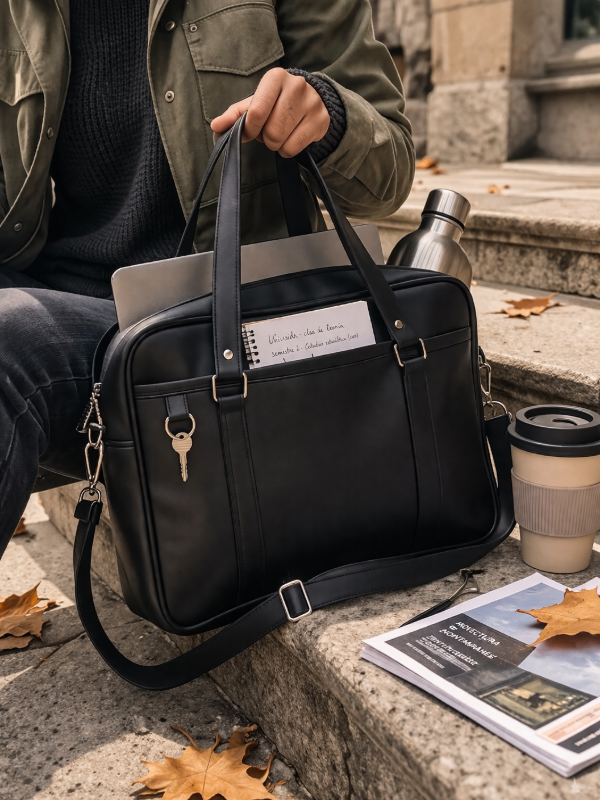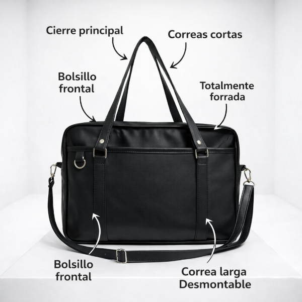 40 de ancho 30 de alto. material ecocuero, adentro forrado. tiene correa más larga