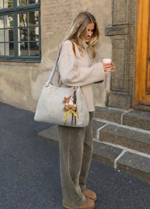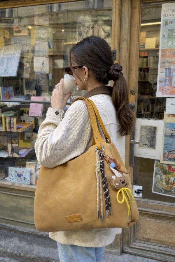 Material gamuza + eco cuero, incluye el llavero.