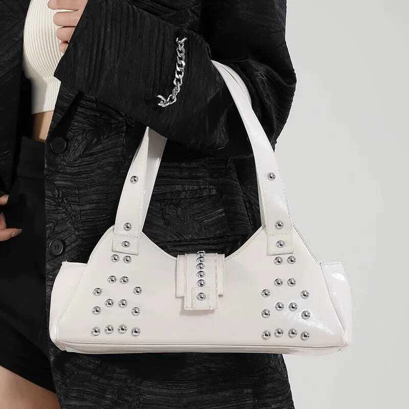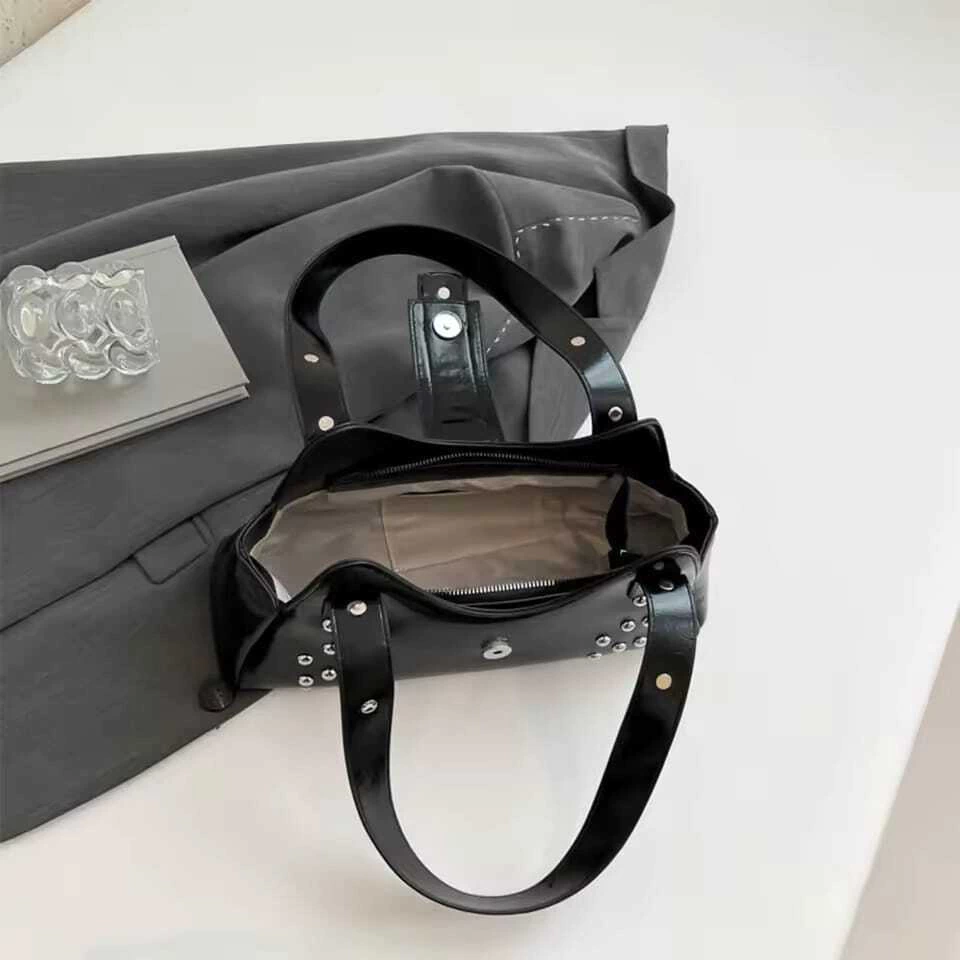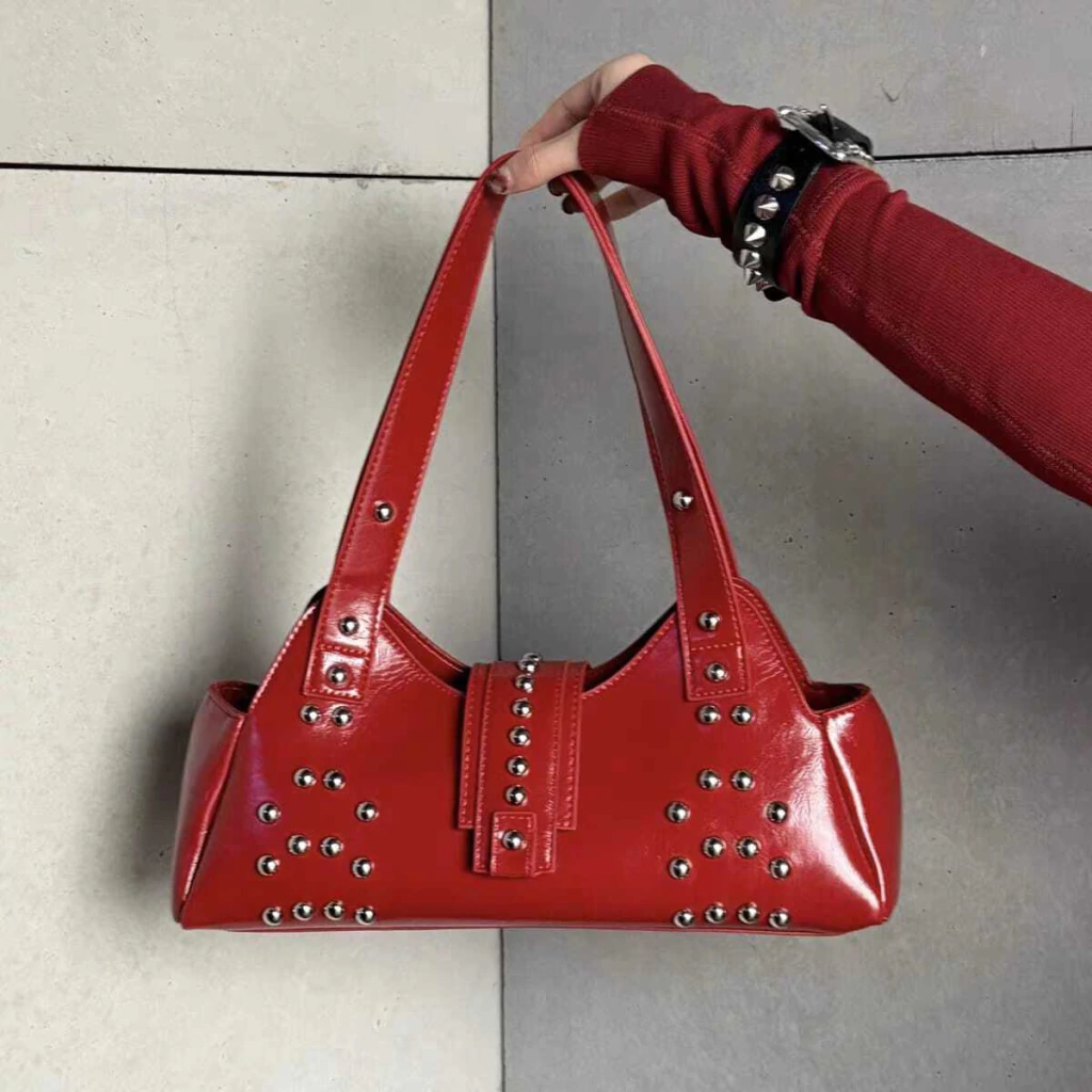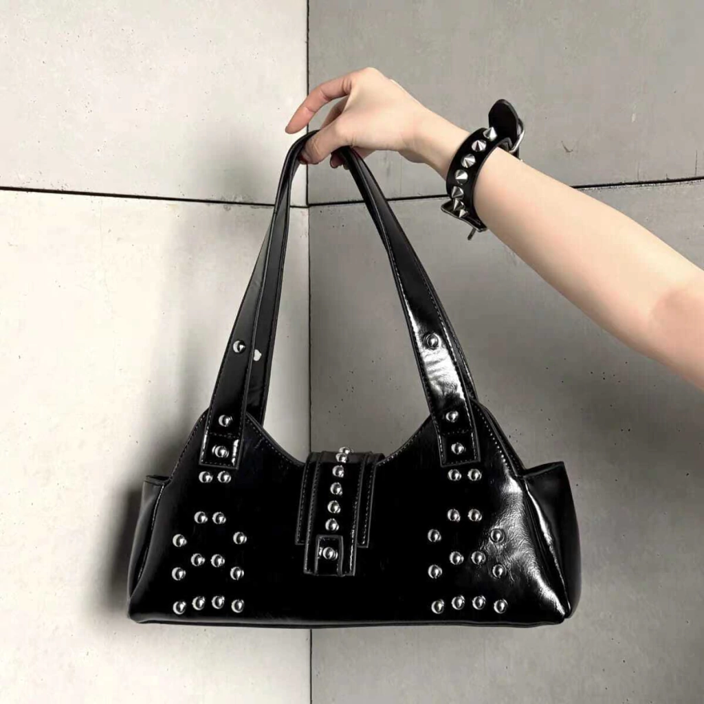 Descubrí la combinación perfecta entre estilo y personalidad con esta cartera con tachas. Ideal para darle un toque audaz y moderno a cualquier look, es el accesorio que no puede faltar en tu guardarropa.